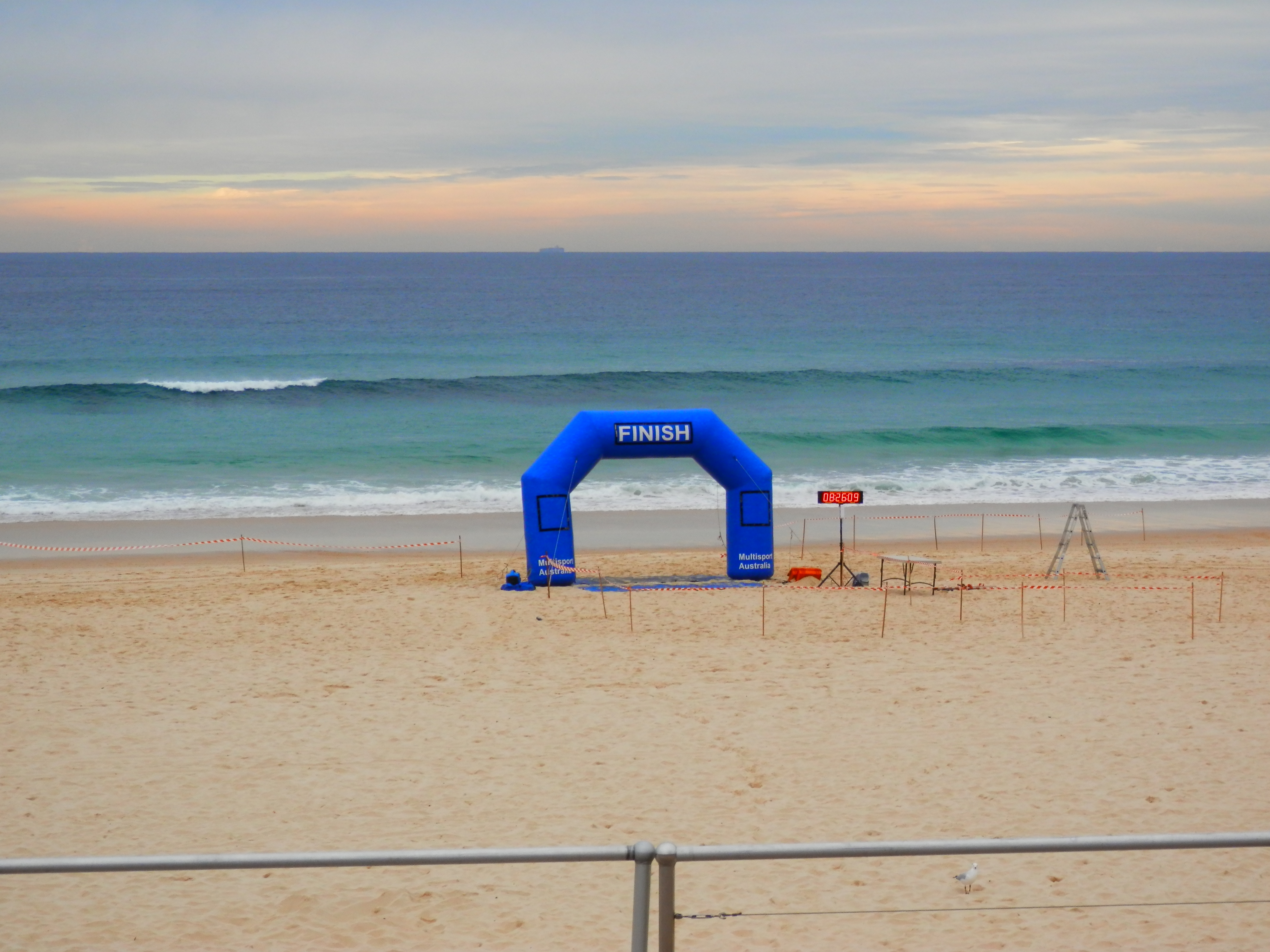 Today I wanted a small wave so that I could catch it. But alas, there was nothing when I swam in, as the sand gently rose to meet me. I stood up, and picked up the knees to run over the finish line. I had finished, and was happy with my effort well aware of the effort it had taken to finish.