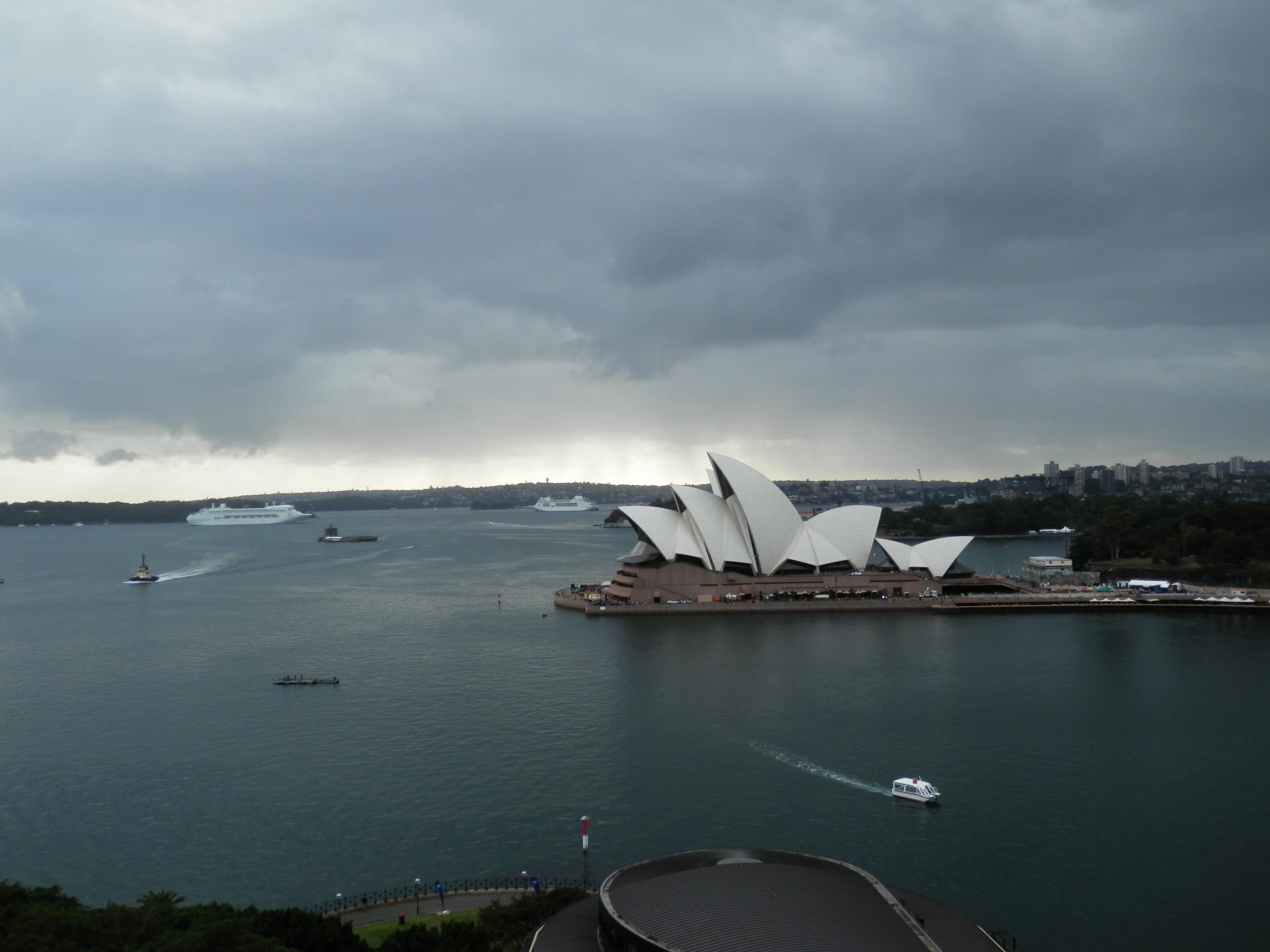 I walked across the Sydney Harbour Bridge on a cool cloudy morning that threatened a drop or two of rain. At least the worst of the hot sun would be behind the clouds today. It was a nice walk, and I stopped several times to take some photos of the iconic scenes before the crowds showed up for the celebrations on the Harbour.