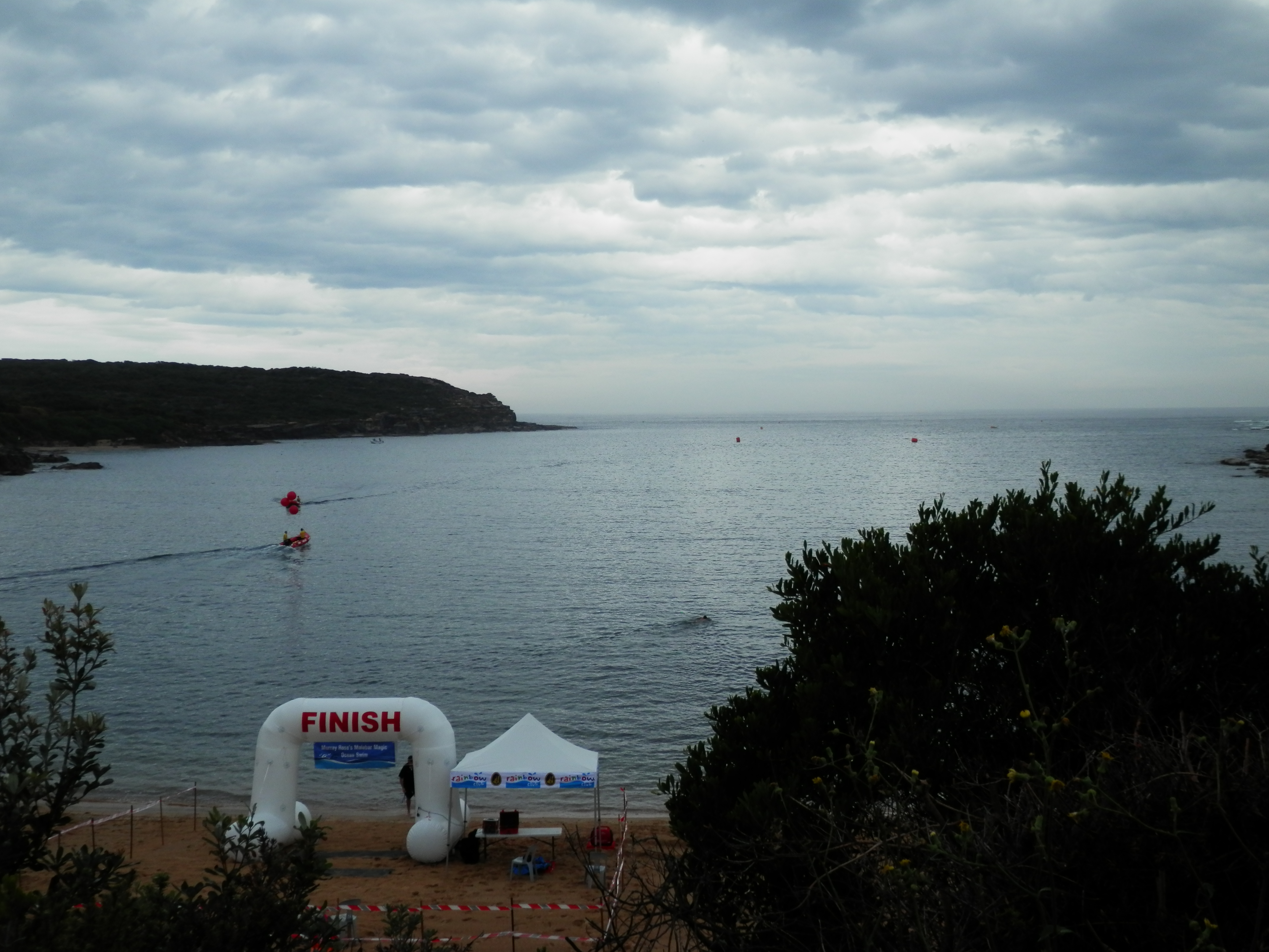 Before long it was time for the 2.4 km event. I looked out to the head of the bay and noticed the size of the waves hitting the southern headland. This meant a nice north-east swell would push us across the head of the bay, once we turned at the halfway mark. I was looking forward to that lovely caress from the swell in the absence of any breeze.