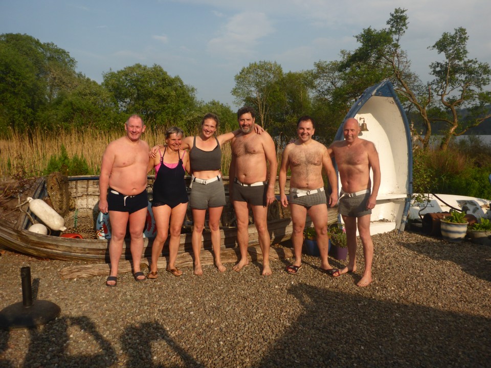 One of the stories featured in the book and TV show was how it was common for Scottish people of his generation to wear woollen knitted swimwear when they went on their summer holidays to Scottish coastal resorts. We of my swimming friends was contacted by the production company to see if he could organise up to six people who would be interested in appearing in the TV show wearing knitted swimwear. No choice really, swim in a loch close to Glasgow, and meet Billy Connolly, who could pass up that opportunity.