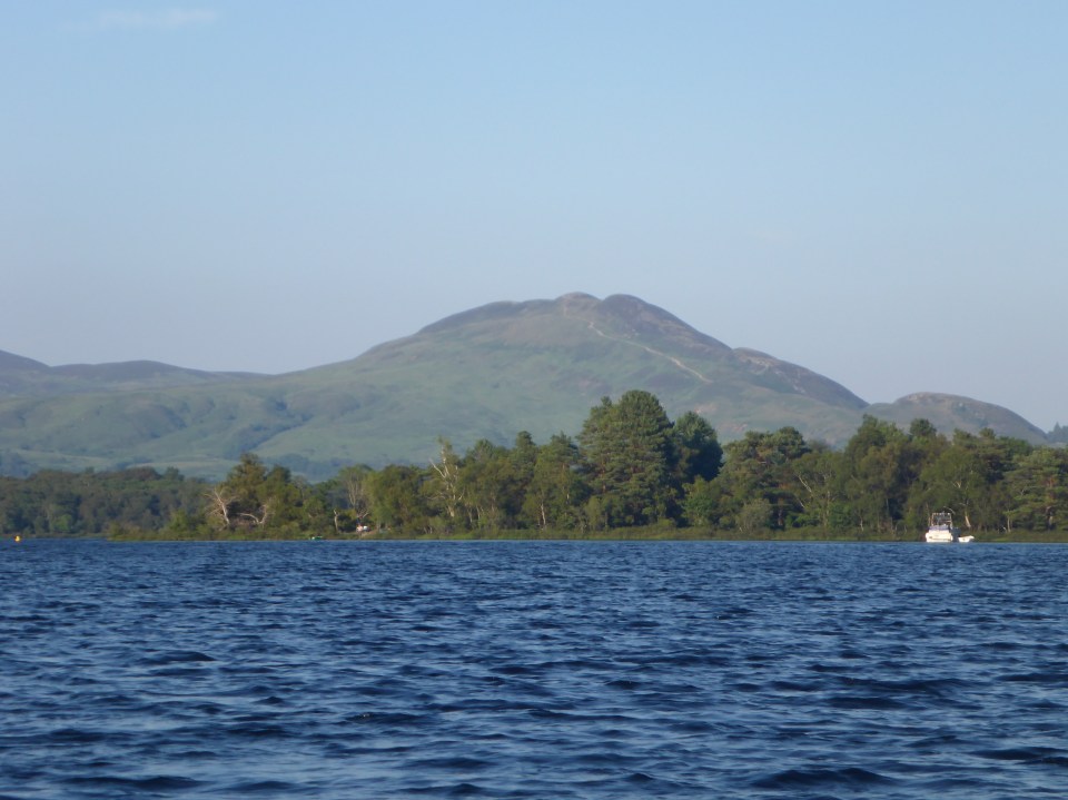 We would often stop at the southern entry to the bay, with views southwards towards Inchmurrin and Duck Bay, as there was a nice shallow bank to rest one and eat any food or drink that we had in our tow floats. Then along the south east shore keeping off the shore to avoid the shallows, and a fence line that wades into the loch.